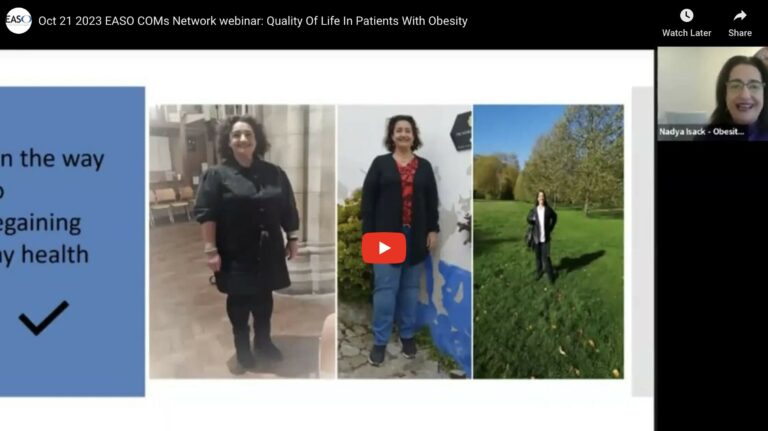 In this session, three expert speakers explored the significance of Patient-Reported Outcome Measures (PROMs) and quality of life (QOL) in obesity management and patient care. Members of the EASO COMs network learned how PROMs empower patients to report on various health aspects, the crucial role of QOL in patient care, and why both are vital […]View -